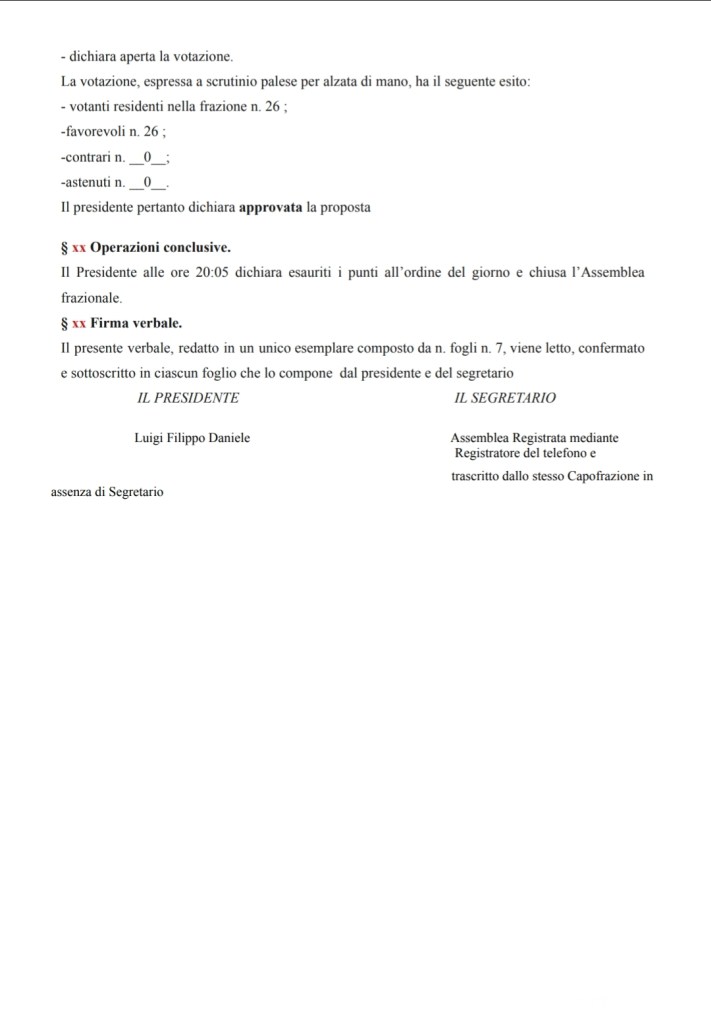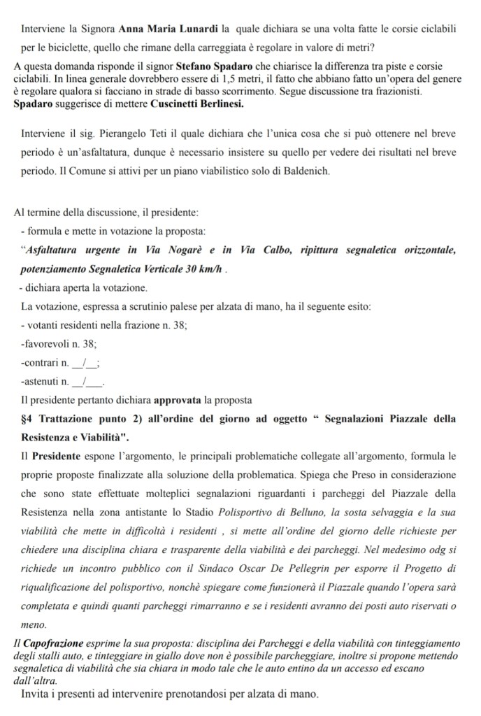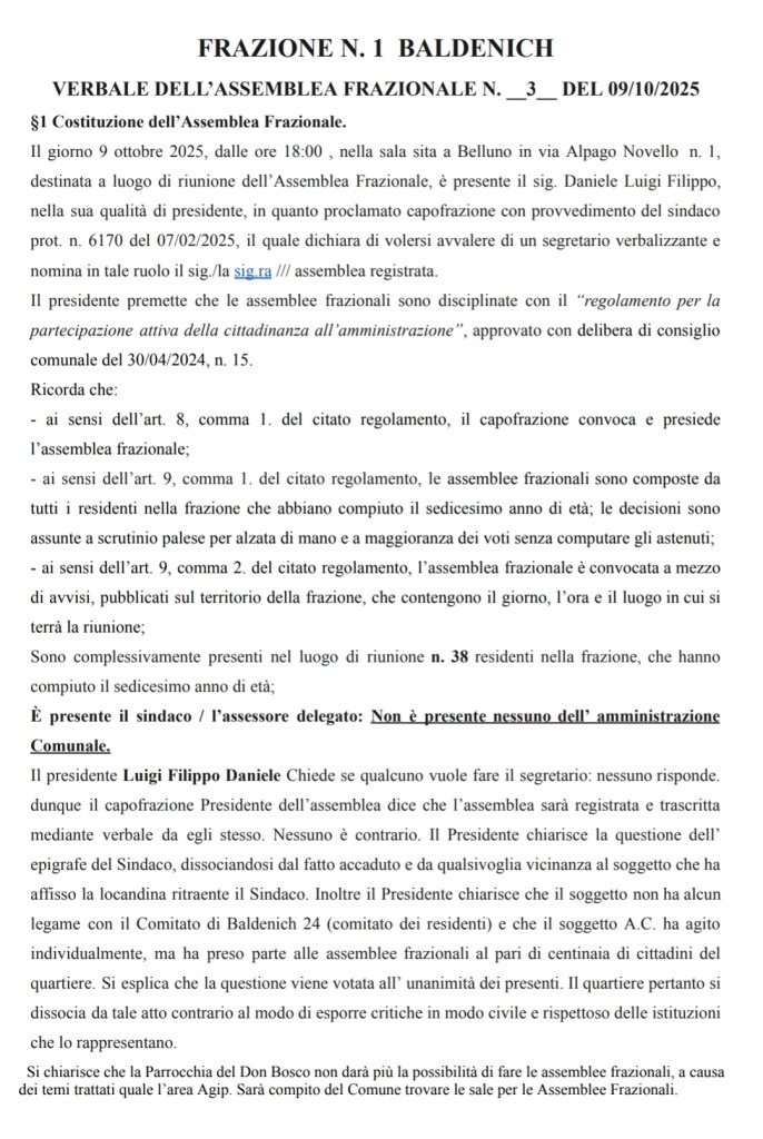 Con la seguente è reso pubblico il verbale della Terza assemblea frazionale Baldenich.