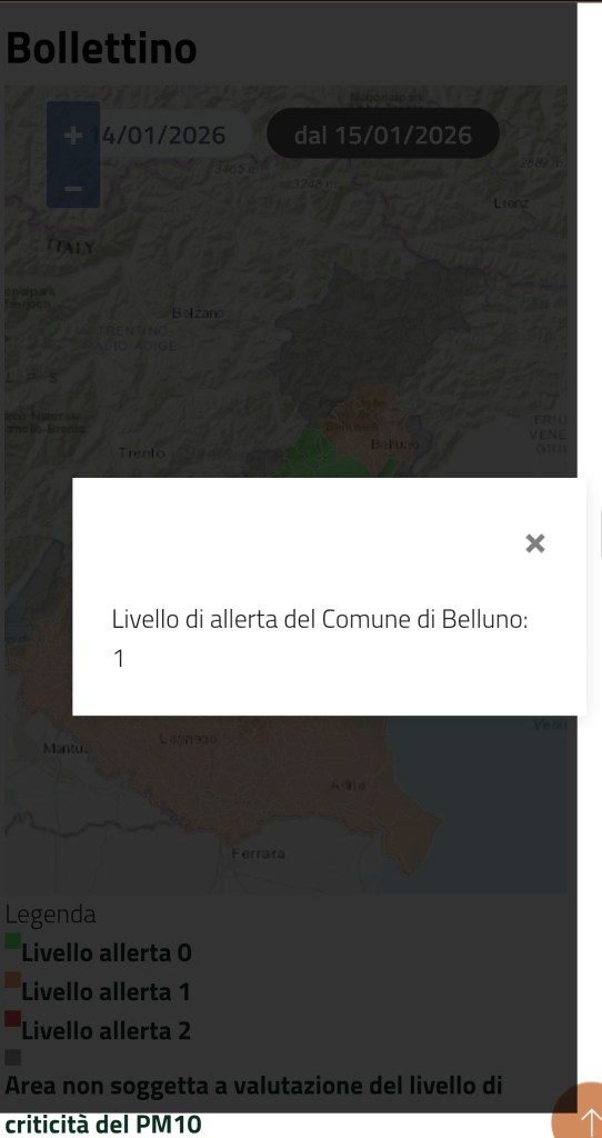🟠 Allerta PM10 a Belluno: livello 1 (arancio).