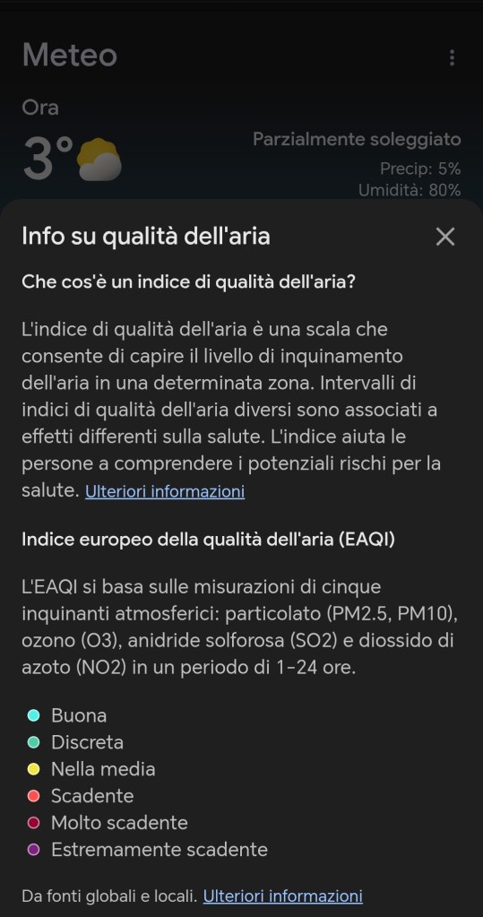 Siamo quindi a metà scala. Non è un emergenza, ma è già una situazione che impone limitazioni concrete su traffico, riscaldamento e combustioni All’aperto. E soprattutto è una situazione che impone una più ampia riflessione sulla qualità dell’aria che respiriamo quotidianamente, sull’inquinamento e sul futuro delle nuove generazioni.