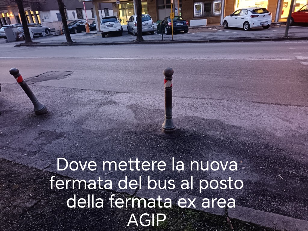 Oltre al decoro, Baldenich24 solleva una questione viabilistica legata alla Linea Verde. Attualmente l’autobus effettua la fermata di fronte all’ex area Agip, in prossimità della rotatoria di Baldenich, sostando di fatto sulla carreggiata e sopra le strisce pedonali. «È uno dei punti più delicati della zona – evidenzia Daniele – e così com’è oggi crea rallentamenti e potenziali rischi per pedoni e automobilisti». La proposta è di arretrare la fermata di qualche metro, prima dell’incrocio con via Plebiscito, nello slargo di fronte al “Bar da Renzo”, dove si trovano due paletti dissuasori. «Una soluzione semplice che migliorerebbe la sicurezza e renderebbe più fluido il traffico».